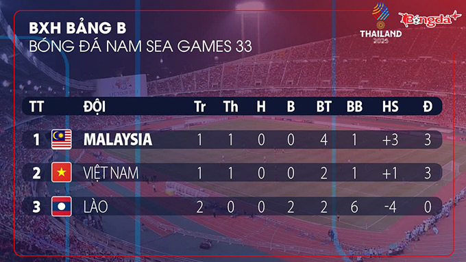 Sau vòng đấu đầu tiên tại bảng B môn bóng đá nam SEA Games 33, U22 Việt Nam và U22 Malaysia đều có được chiến thắng trước U22 Lào, nhưng kết quả lại đang mang đến lợi thế cho đại diện Malaysia. Trong khi U22 Việt Nam vượt qua đối thủ với tỷ số sát nút 2-1, đội bóng của HLV Kim Sang Sik bị lép vế về hiệu số bàn thắng bại so với U22 Malaysia, đội đã đánh bại Lào với tỷ số đậm 4-1. Hiệu số hiện tại giúp U22 Malaysia tạm thời dẫn đầu bảng với +3 bàn trong khi U22 Việt Nam chỉ có +1. Kết quả này tạo ra áp lực lớn cho thầy trò HLV Kim Sang Sik khi họ chuẩn bị bước vào cuộc chạm trán trực tiếp quan trọng với đối thủ vào ngày 11/12.