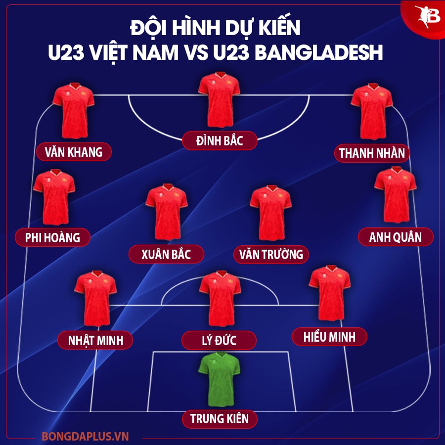 Trên hàng công, bộ ba Văn Khang, Đình Bắc và Thanh Nhàn nhiều khả năng sẽ được HLV Kim Sang Sik tin tưởng. Sự trở lại của Thanh Nhàn sau chấn thương hứa hẹn sẽ tăng cường sức mạnh tấn công cho U23 Việt Nam. Văn Khang và Đình Bắc, với khả năng săn bàn và tạo đột biến, sẽ tiếp tục là những mũi nhọn đáng gờm trên hàng tiền đạo. Sự kết hợp này mang đến sự đa dạng trong lối chơi và khả năng ghi bàn cao cho đội tuyển.